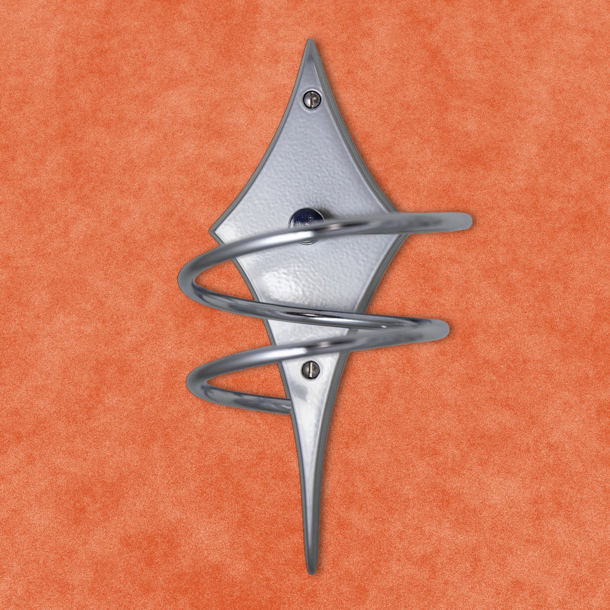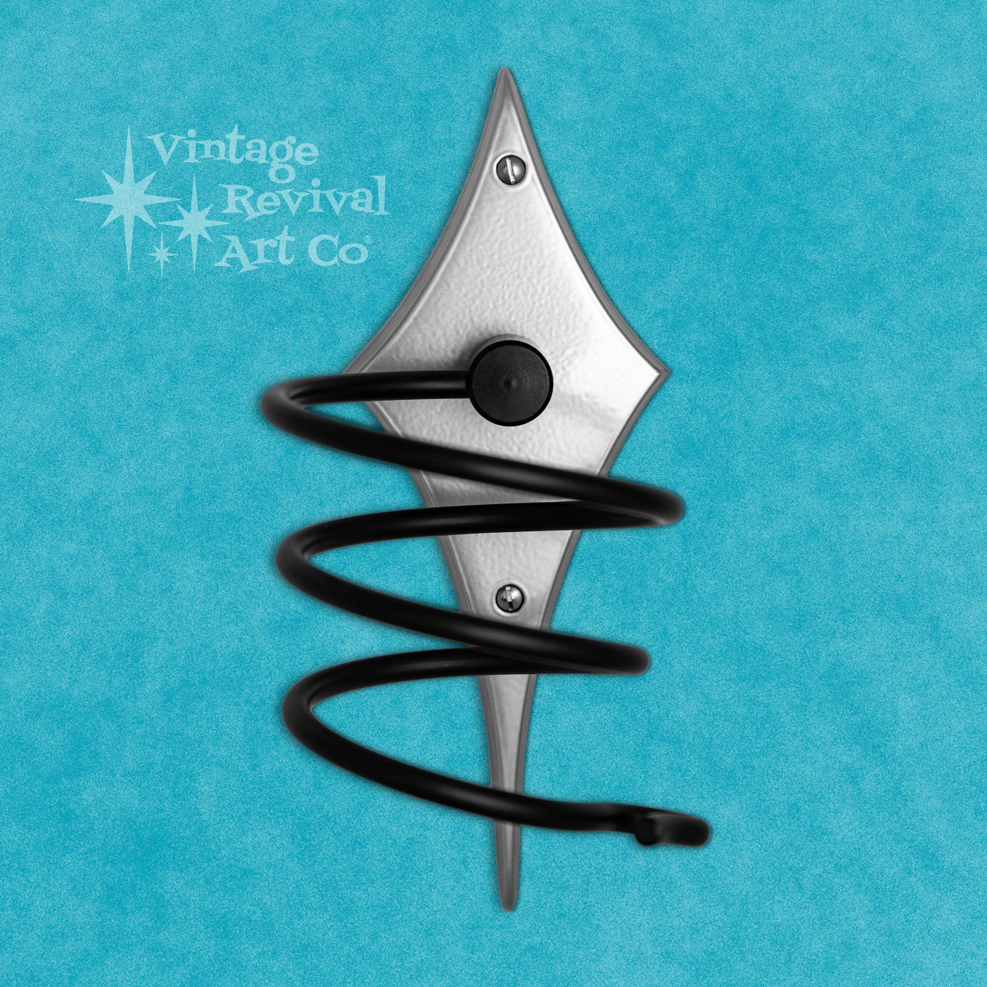The Comet Hair Dryer Holder is a stunning tribute to the atomic space age era of mid-century design. Meticulously handcrafted, this backplate is cast from solid aluminum, and finished with your choice of powder-coating offering both durability and a touch of timeless elegance. Its sleek and streamlined form captures the essence of the space age style, evoking a sense of atomic-inspired sophistication.