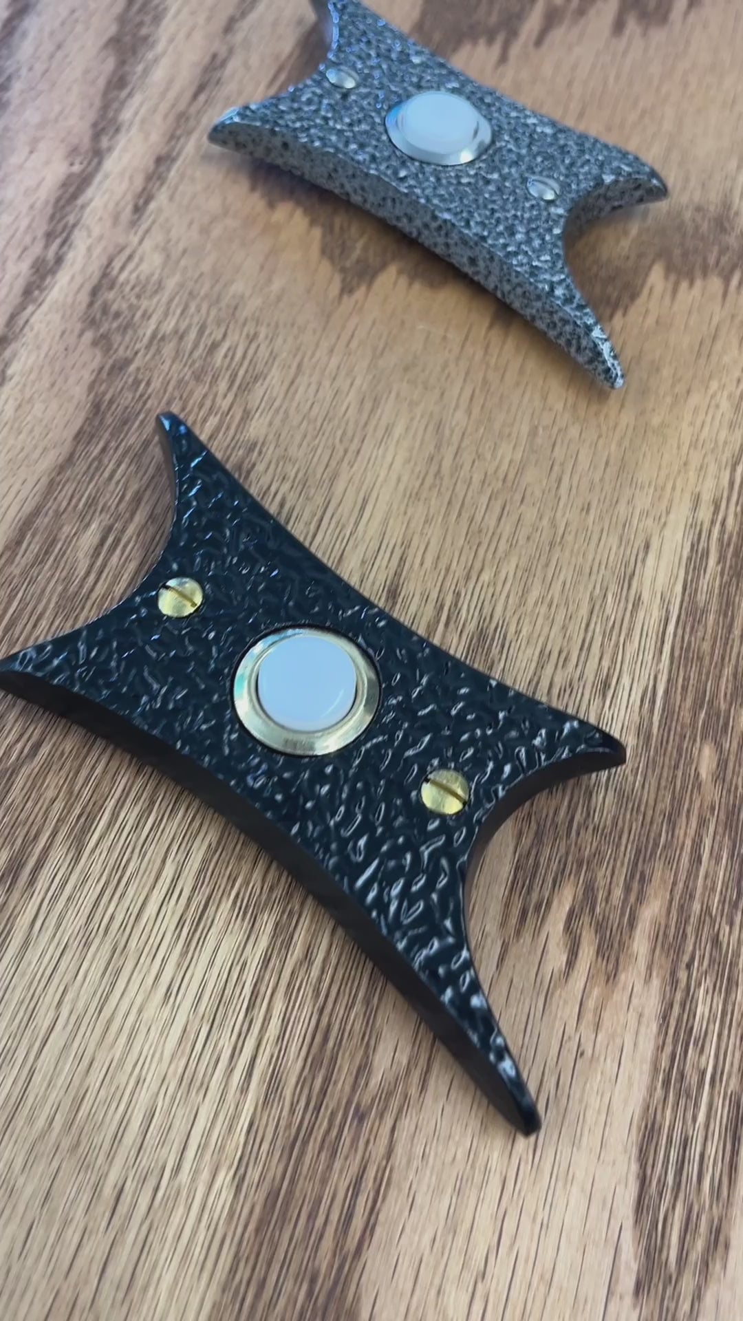 - Matte Black Powder coat/gold button - Comes with gold button surround & brass hardware.